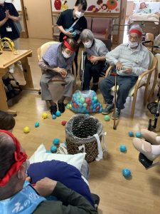紅組と白組に分かれて玉入れを行っています。100個以上入ってましたよ(驚き)
