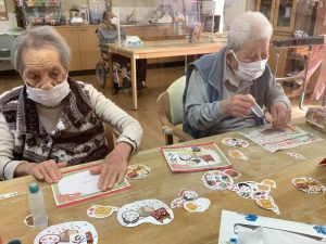 利用者のみんなさんと節分のカード作りをしました。